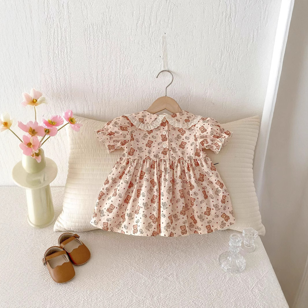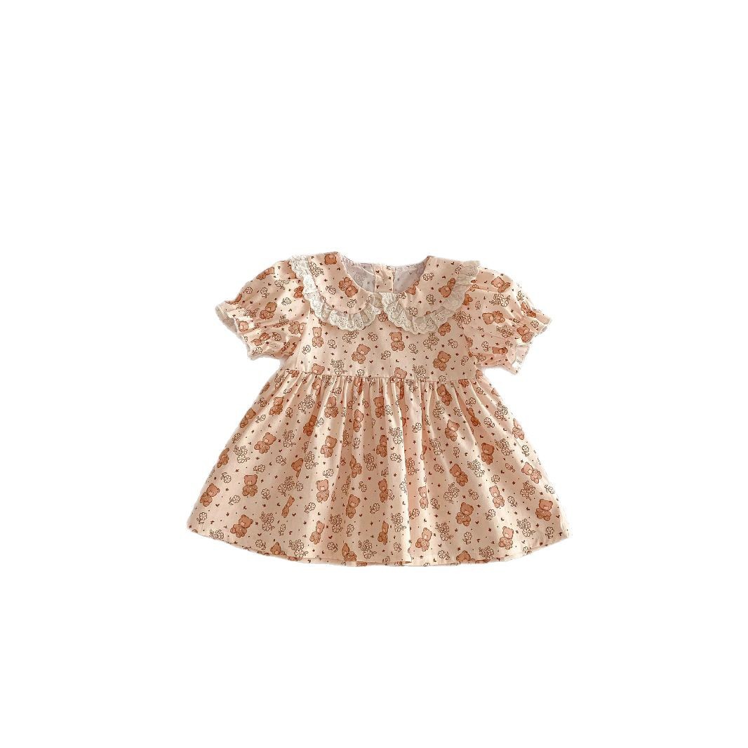 Bear Floral Girl's Dress Western Style Leisure Skirt
