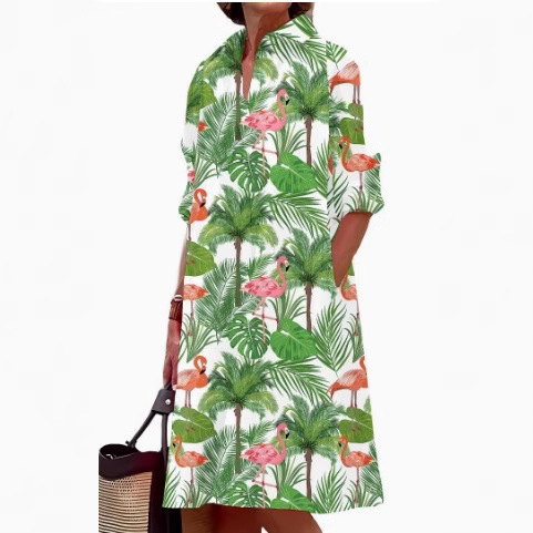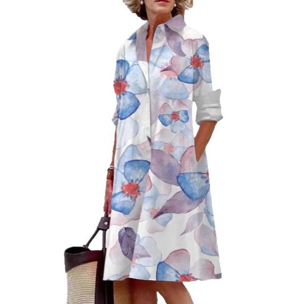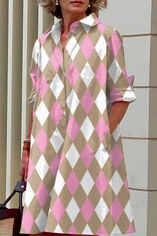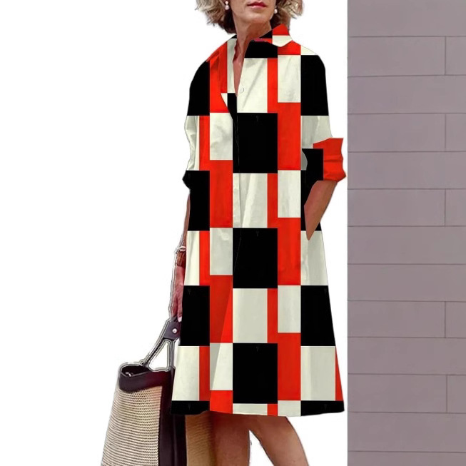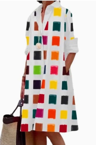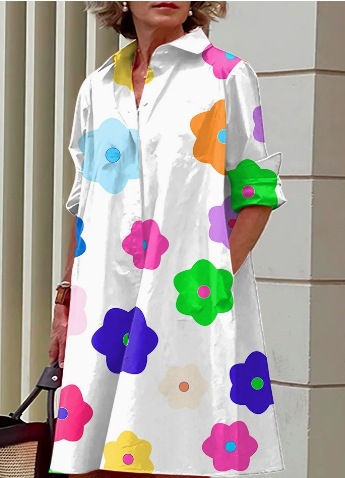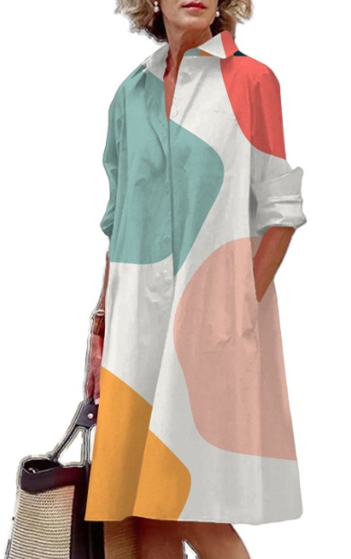 Fashion Polka Dot Printed 3d Printed Shirt Dress