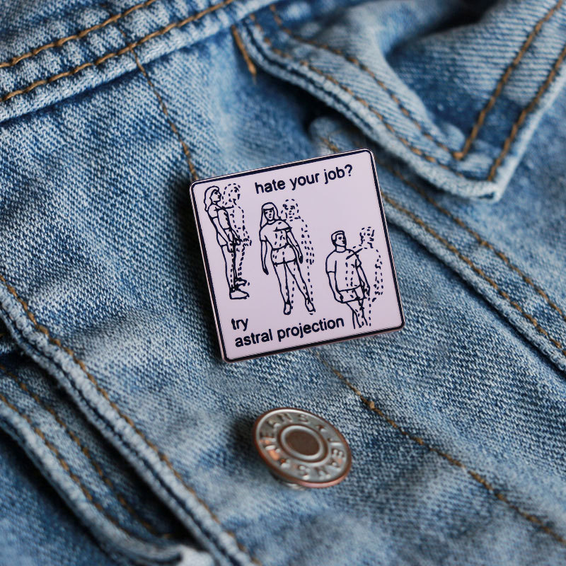 Hate Your Job Try Star Projection Brooch Backpack Clothes Hat Pin