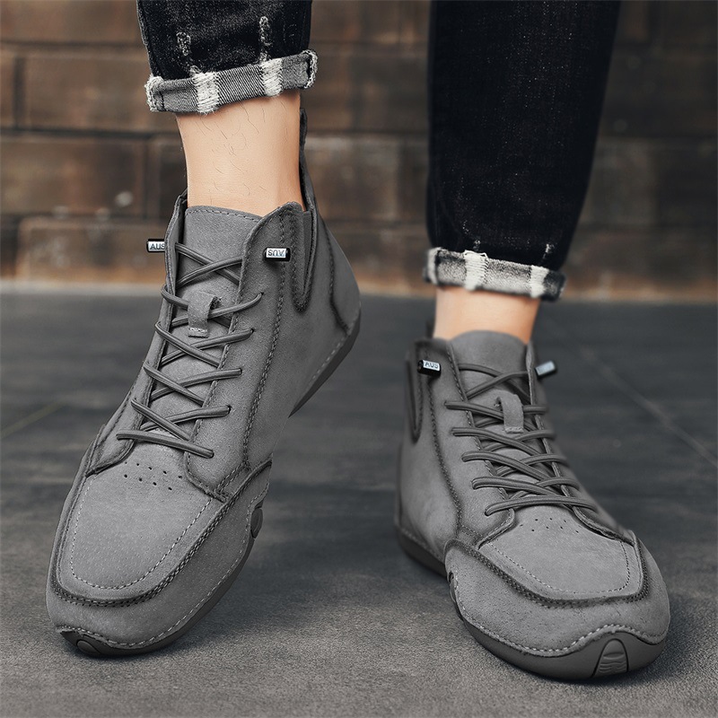 Men's Simple Printed Genuine Leather Working Wear Ankle Boots
