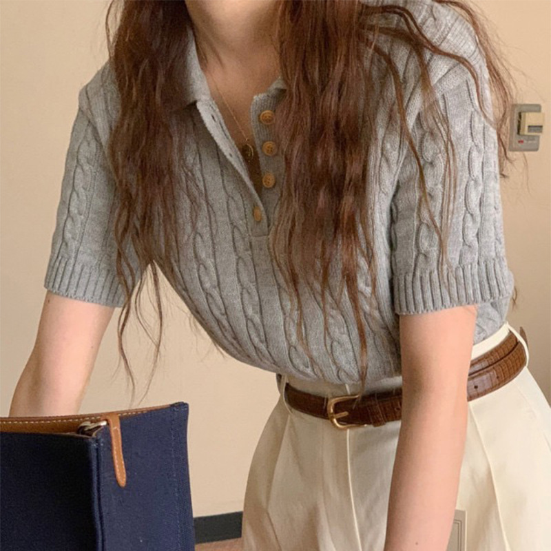 Niche Temperament Polo Collar Hemp Pattern Design Loose Leisure All-matching Short Sleeve