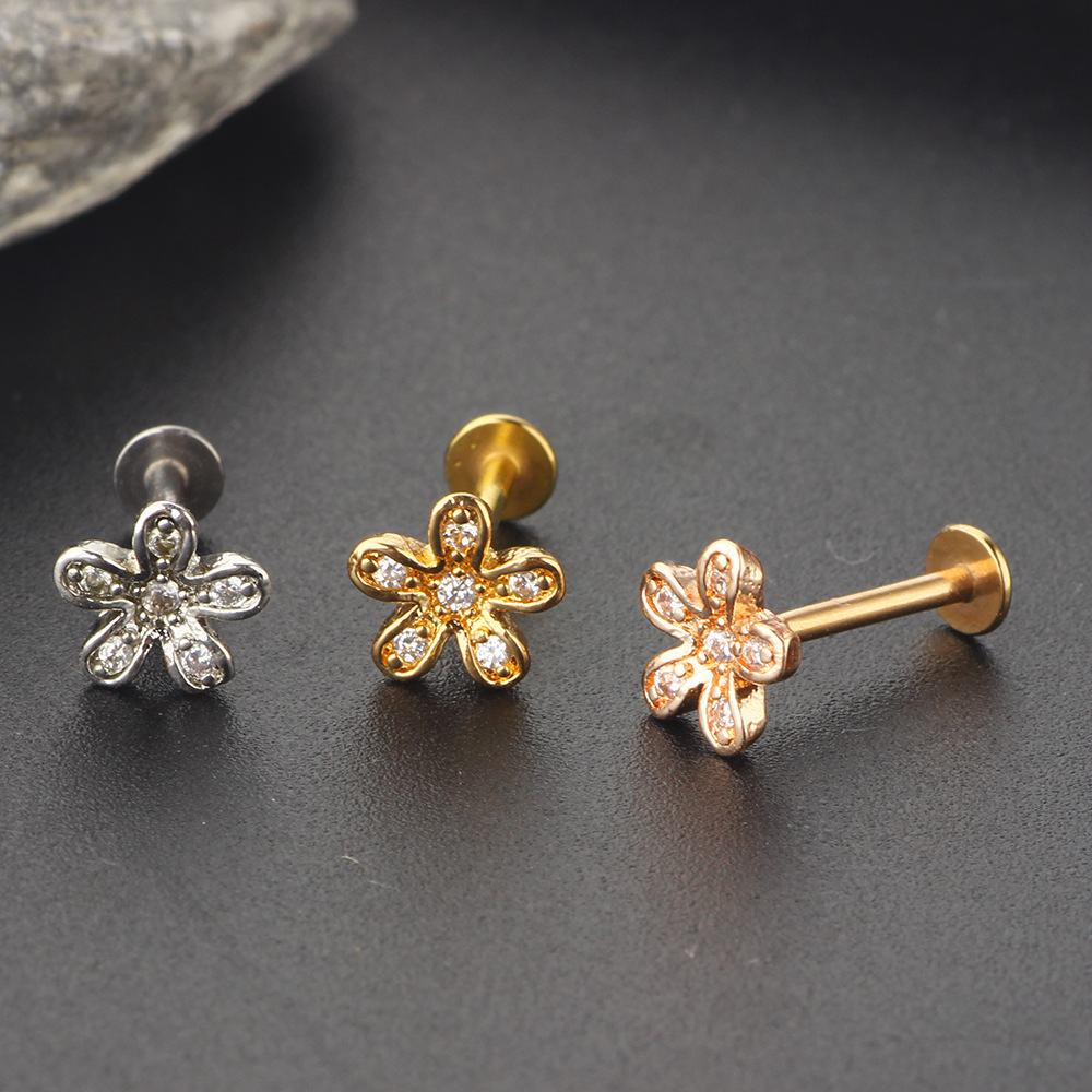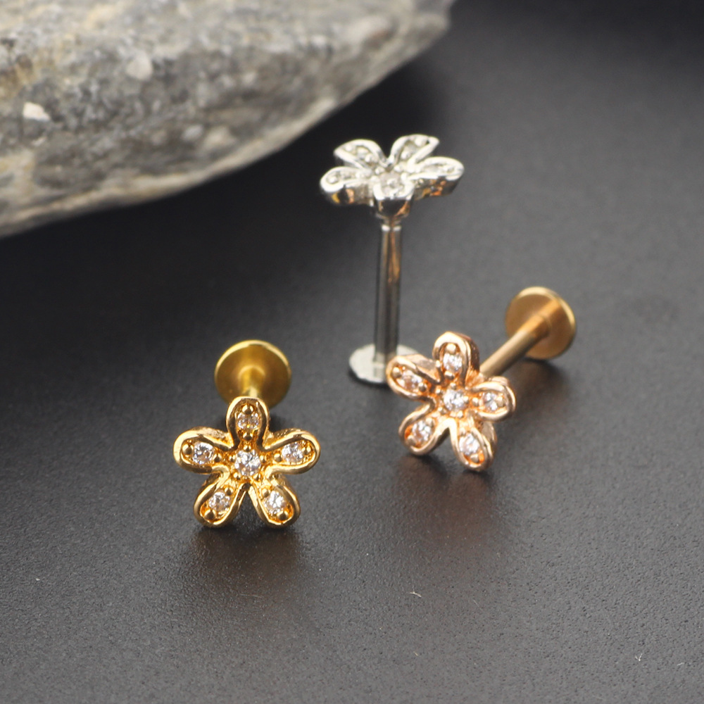Zircon Little Flower Women's Ear Bone Stud Screw Human Body Puncture