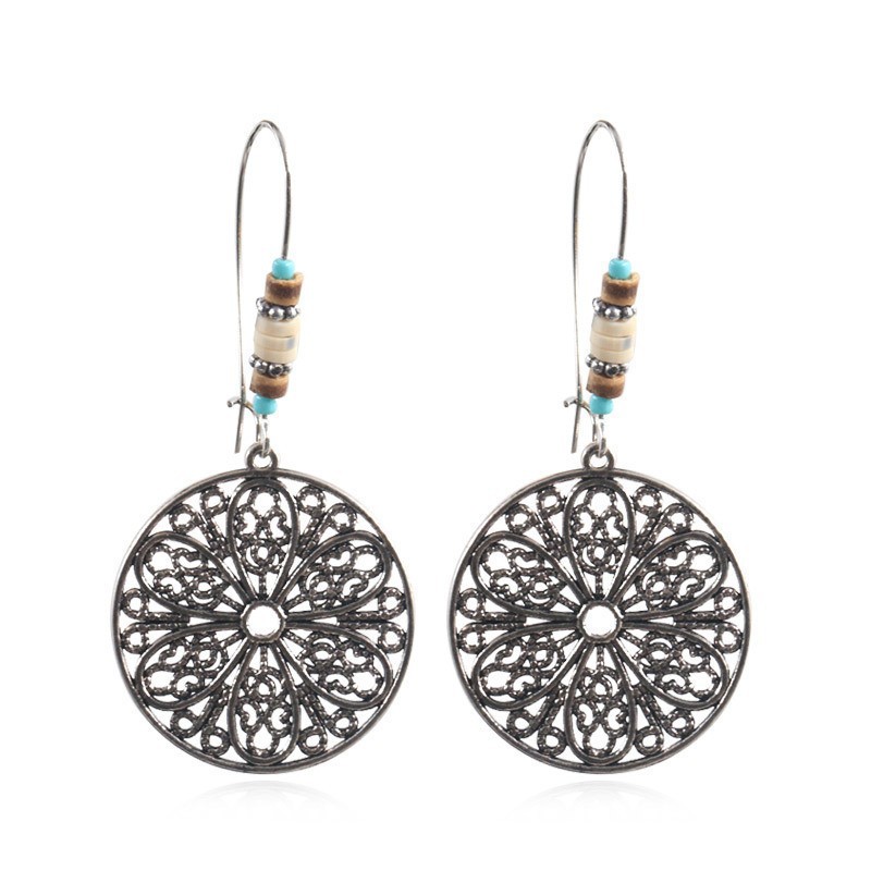 Ancient Bronze Alloy Carved Bohemian Retro Element Earrings