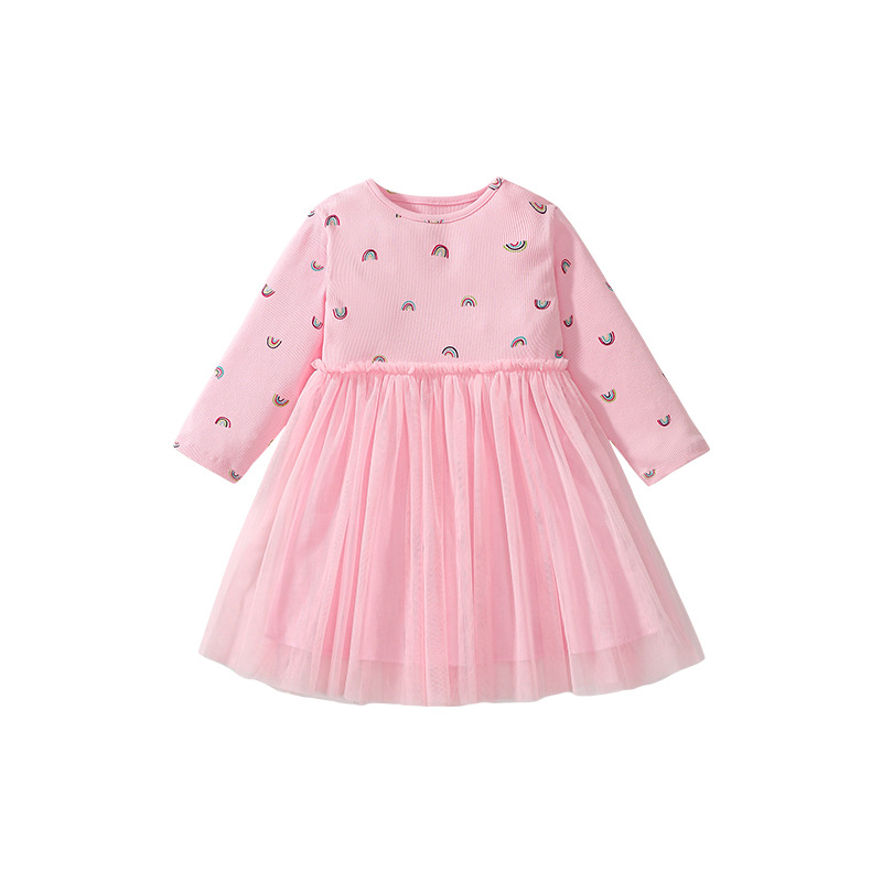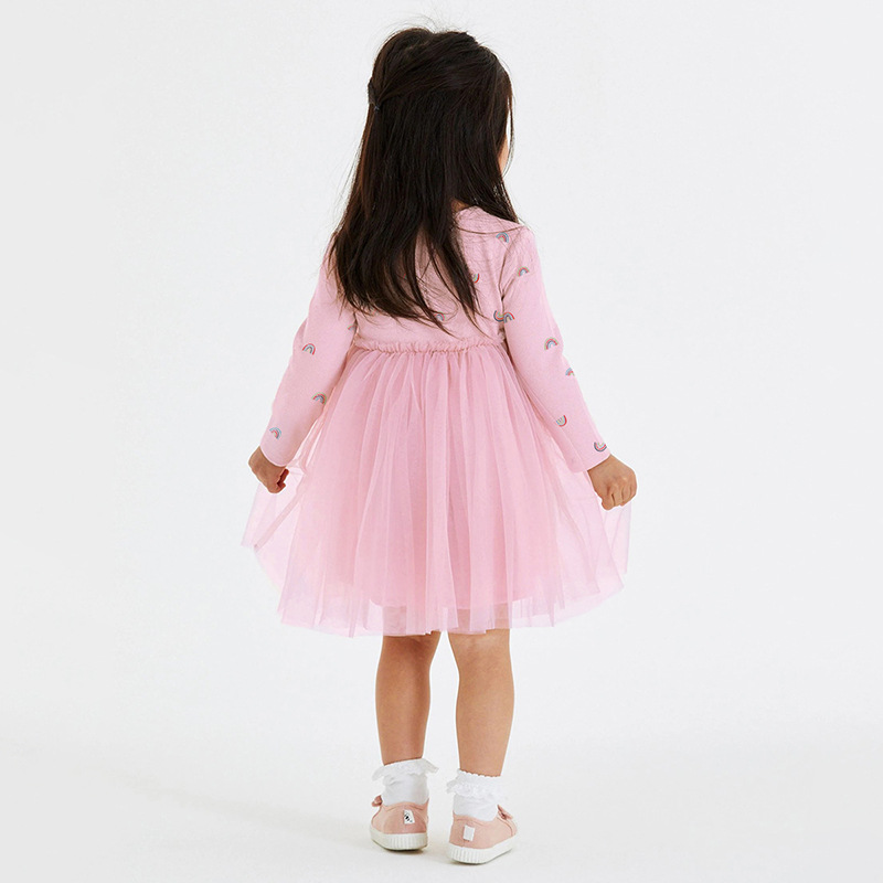 Cute Autumn Mesh Girl's Long-sleeved Dress