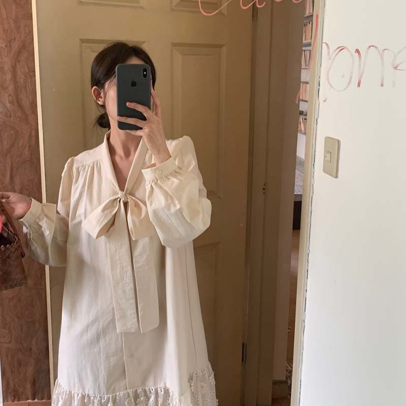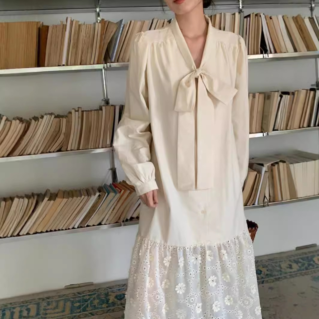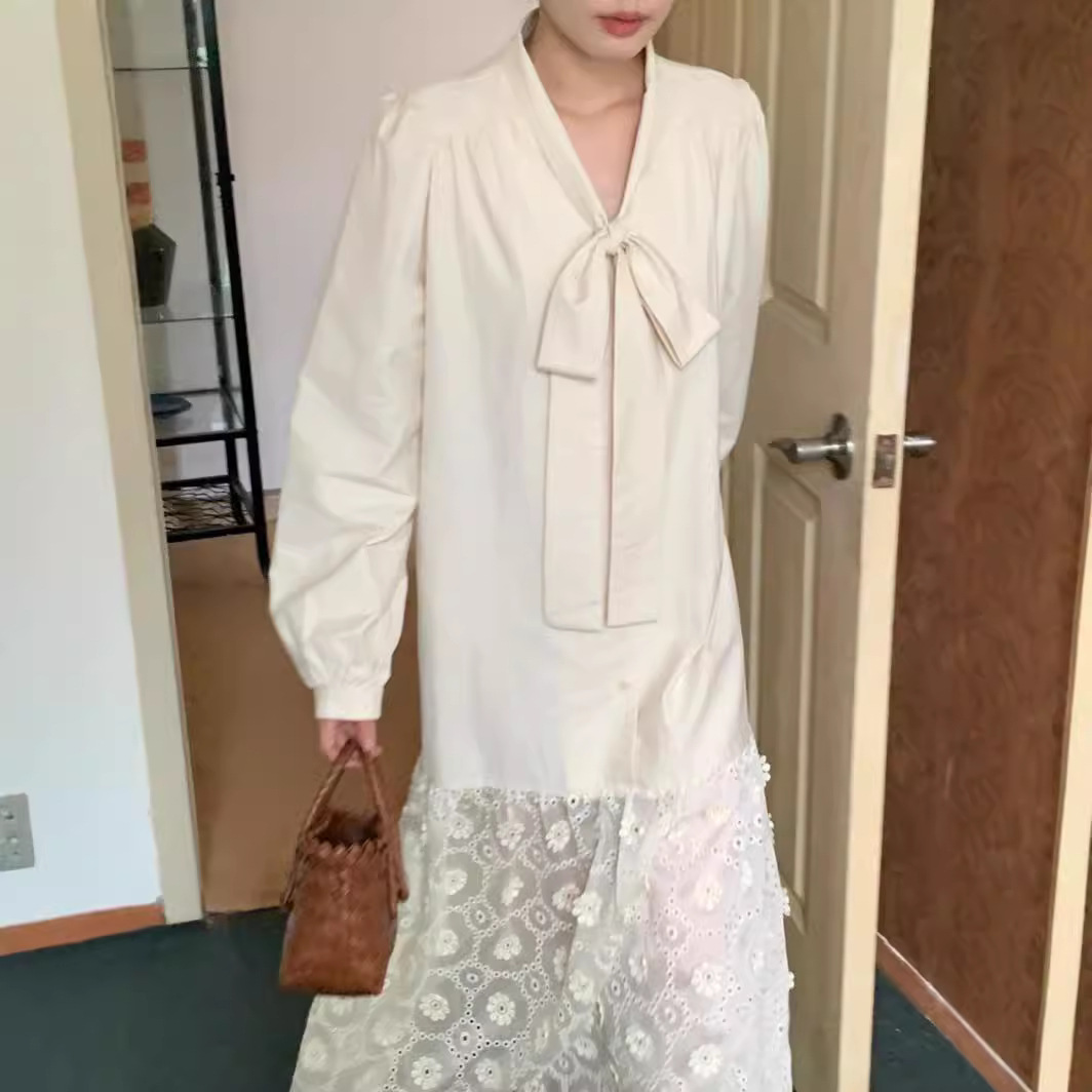Gentle Elegant Tied Bow Stitching Crocheted Skirt