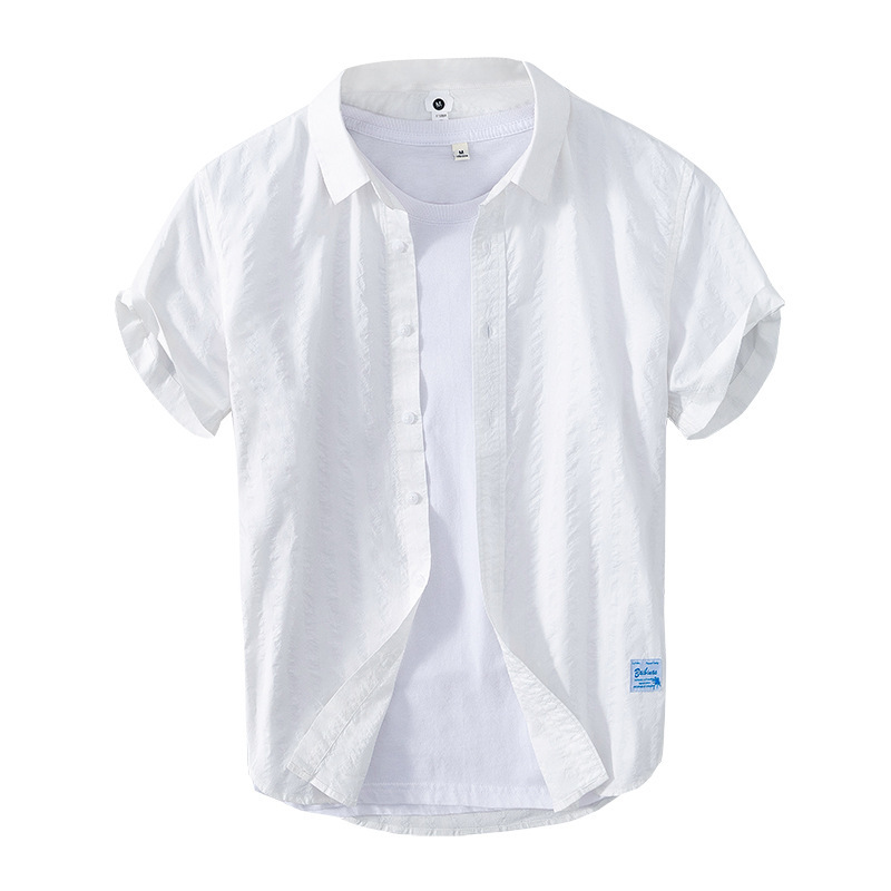 Leisure Dark Striped Thin Short Sleeve Pure Cotton Shirt