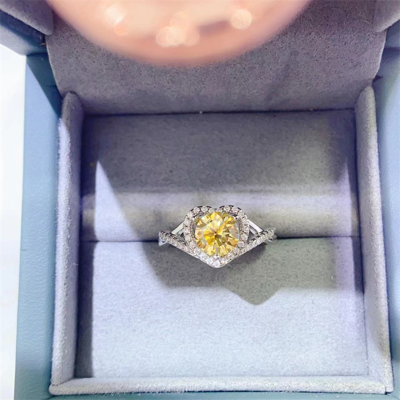 Yellow Moissanite Heart-shaped Color Yellow Diamond Platinum Jewelry Ring